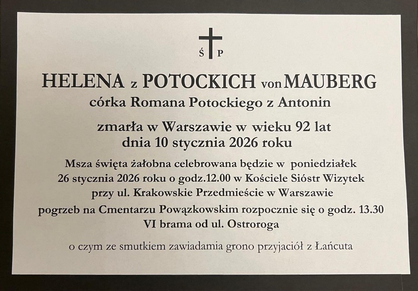 Pogrzeb Heleny Potockiej von Mauberg