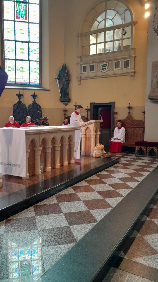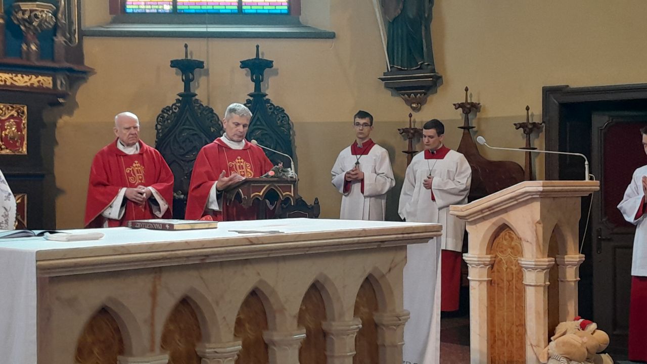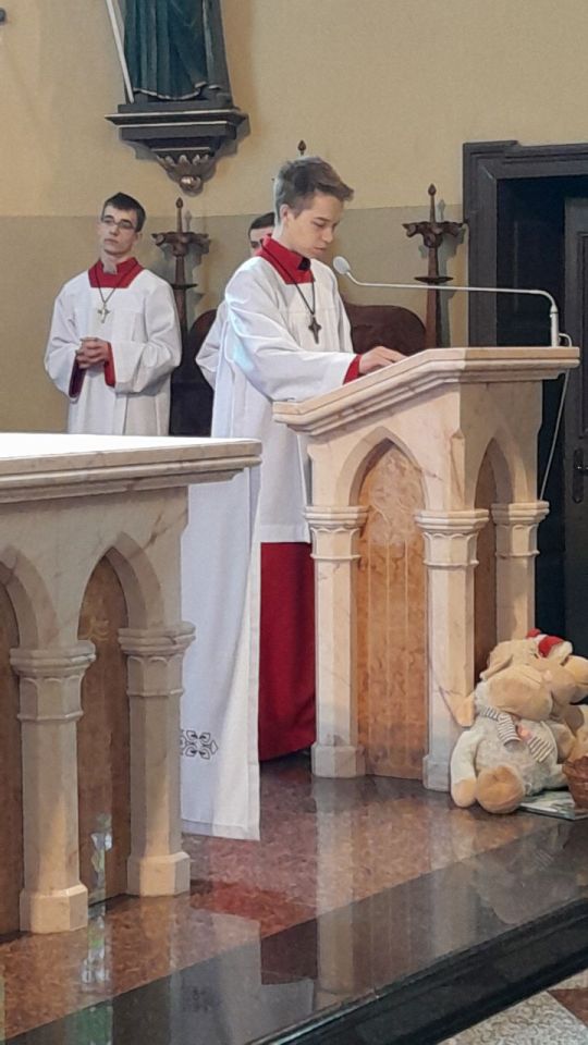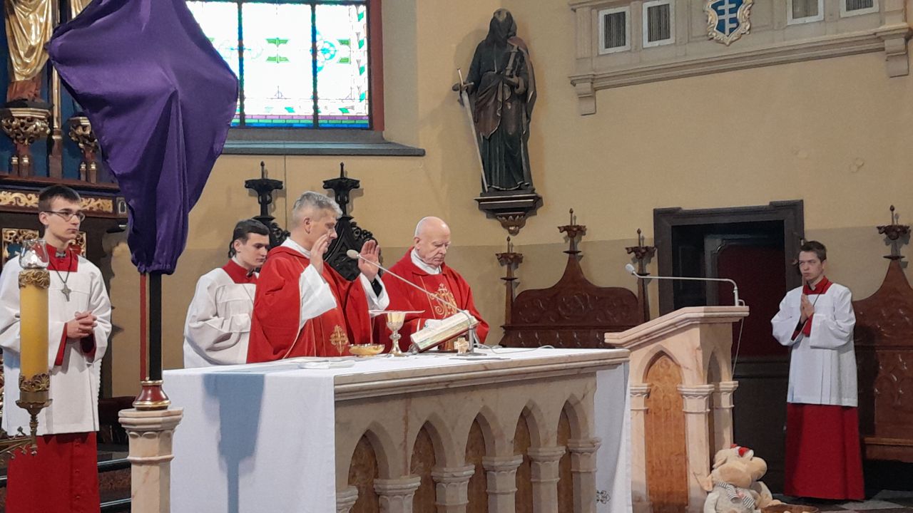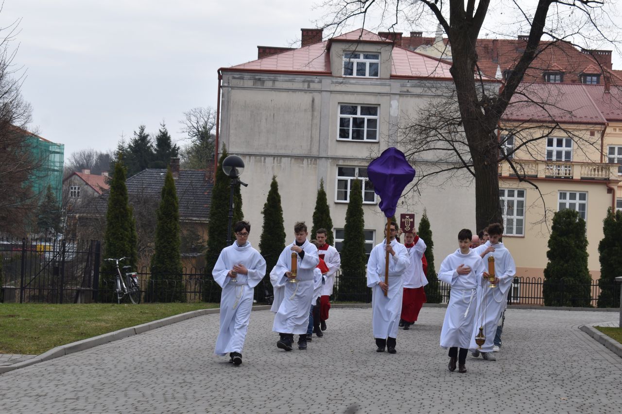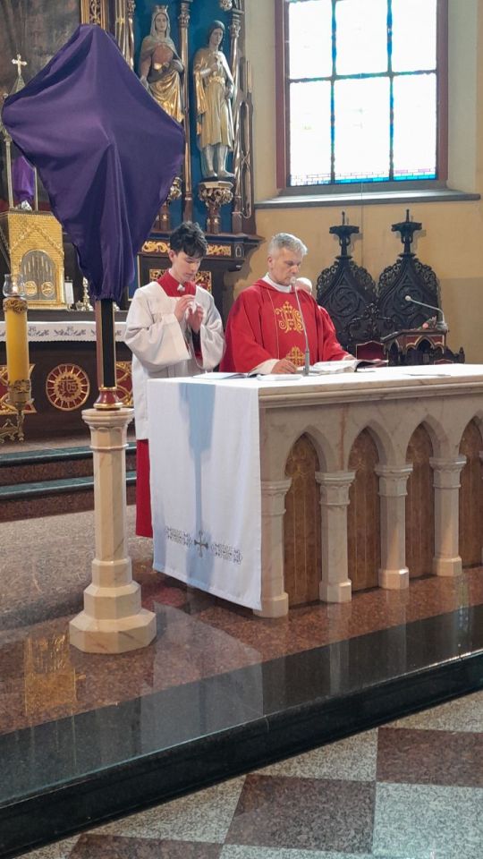29 marca 2026 roku, tydzień przed Wielkanocą, przypadała Niedziela Palmowa. Mszę Świętą o godz. 11.00 rozpoczęliśmy przed ołtarzem polowym, gdzie miał miejsce obrzęd poświęcenia palm. W czasie Eucharystii wysłuchaliśmy opisu Męki Pańskiej wg św. Mateusza.